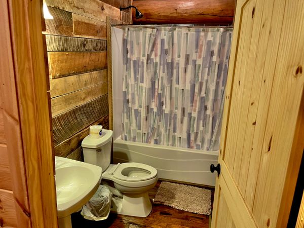 The Engelmann Spruce Lodge comes fully furnished, three bedrooms, two bathrooms, and sleeps up to ten people. There is two bathrooms, one with a shower, an other with a shower tub combo. There is a full size kitchen (fridge, cook top, oven, coffee pot, microwave). Outside there is a porch with seating, and two porches off of the bedrooms. At the communal area there is charcoal grills for outdoor meals. Guest check in at Wayside Campground to sign in and receive the key code.
